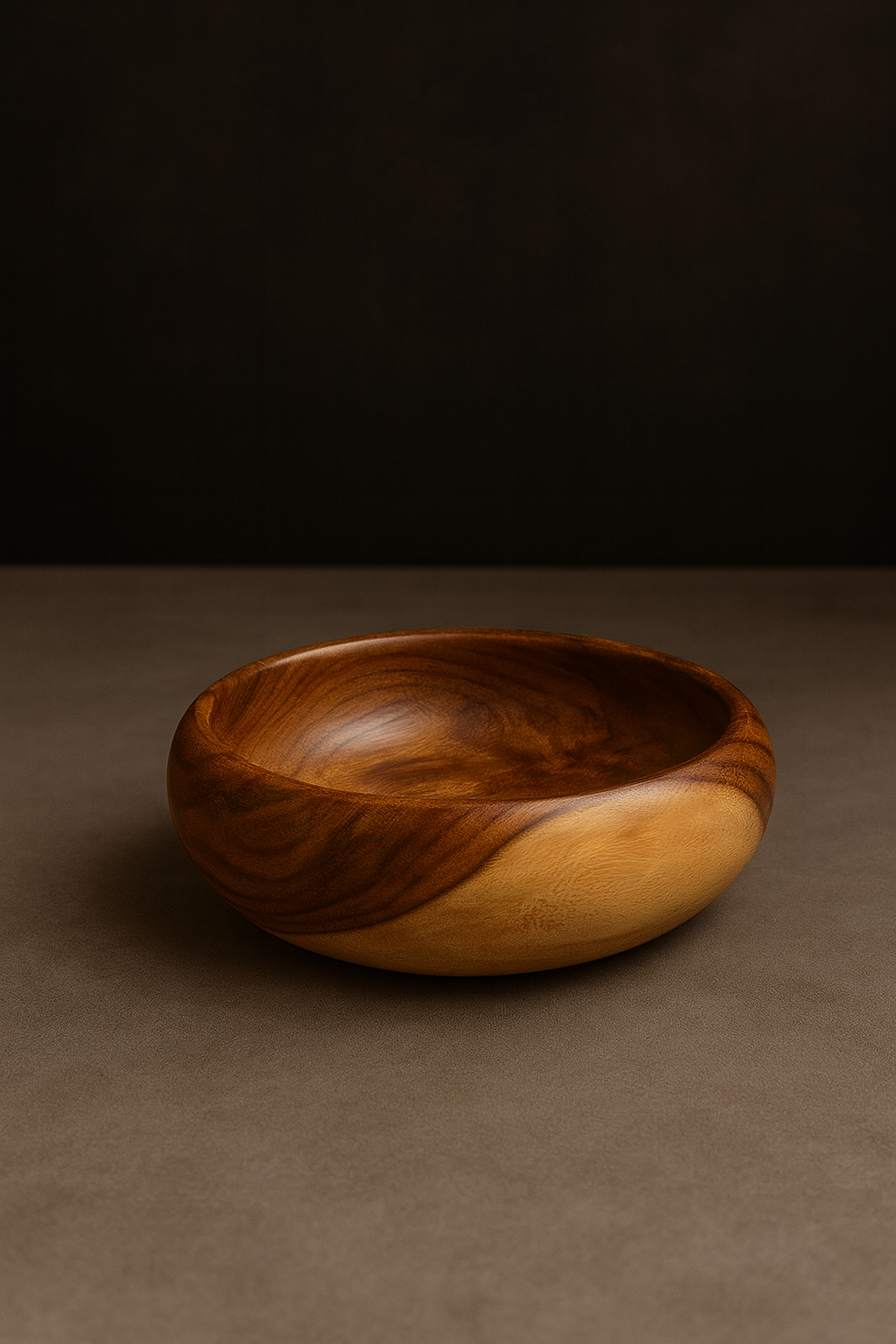 Sculpted by nature and refined by craftsmanship, the Hand-Turned Wooden Bowl is a celebration of organic beauty. Each bowl is carved from solid hardwood, showcasing the natural grain variations and warm dual-tone patterns that make every piece one-of-a-kind.