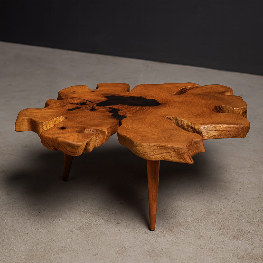 Shaped like a blossoming flower, this table is a sculptural celebration of natural wood. Its intricate details reveal the raw elegance of organic grain, while the irregular edges preserve the rustic authenticity of nature.